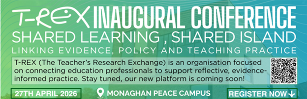 T‑REX Inaugural Conference: Shared Learning, Shared Island – Linking Evidence, Policy and Teaching Practice taking place on 27 April 2026, from 10:00am–5:00pm at the Monaghan Peace Campus.